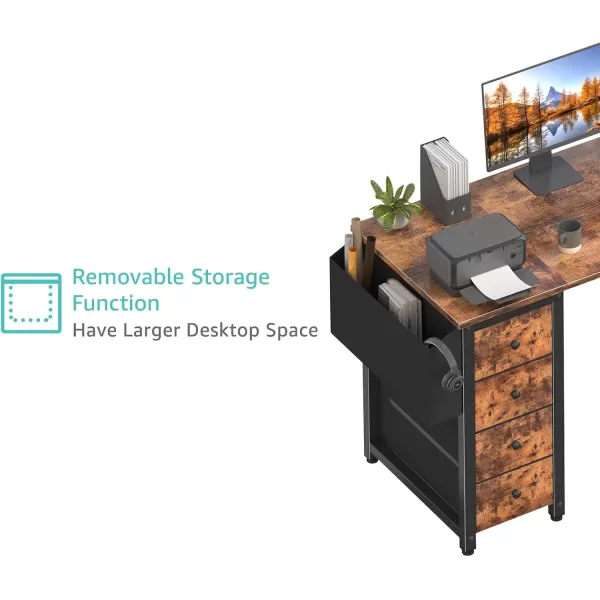 Vintage Style Design: Computer desk with 2 storage shelves and 4 𝙁𝙖𝙗𝙧𝙞𝙘 𝘿𝙧𝙖𝙬𝙚𝙧𝙨 with wooden front, you can try this two installation methods (left or right), and the shelves have two different heights of installation, you can customize the storage space to your needs. This desk is made of thick P2 particle wood board with scratch-resistant, anti-collision and waterproof, protect home office desk surface from daily wear and tear.