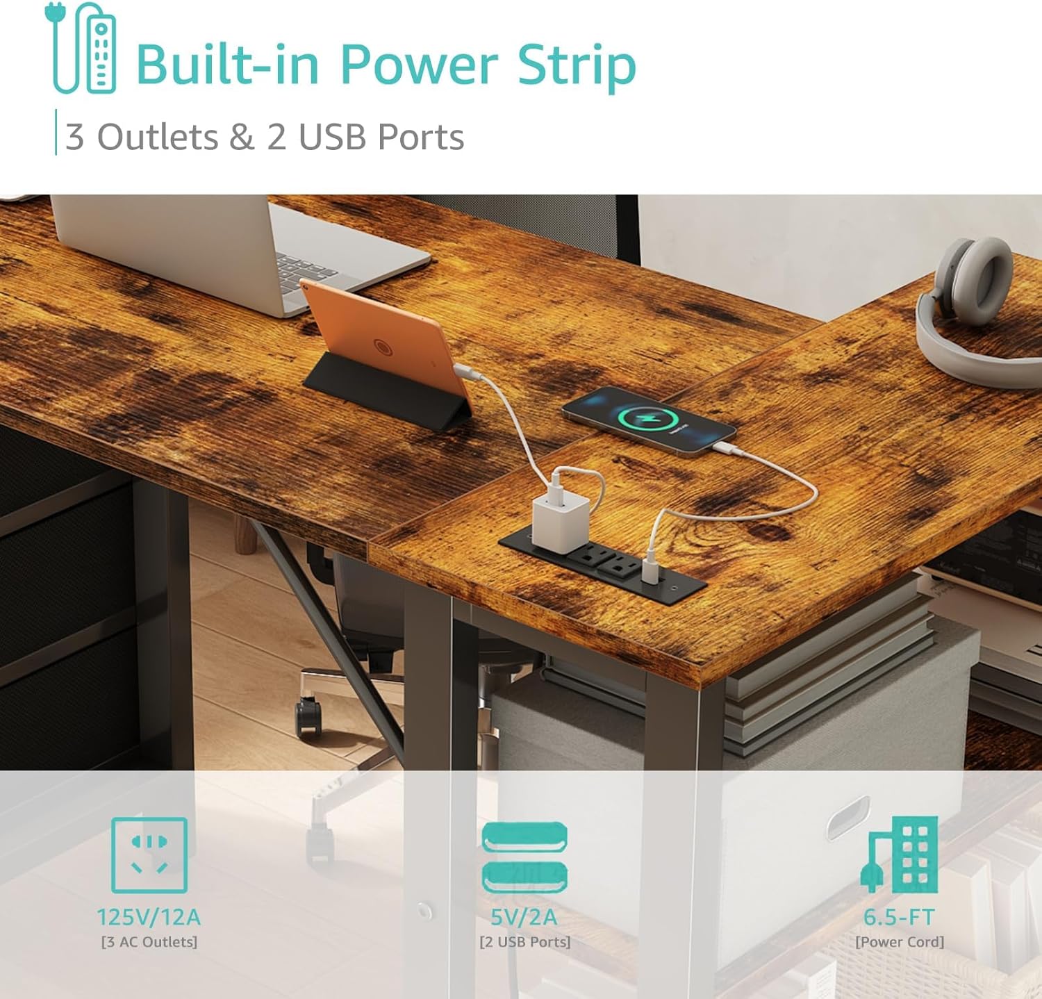 Safety Multifunctional Power Strip: The computer desk includes a built-in power strip with 3 power outlets & 2 USB charging ports for your computer, monitor, gaming gear, pad, phone and other electronic devices. The desk is USPTO Patent Approved