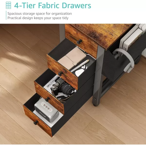 Modern Simple Style Design: Computer desk with 2 storage shelves and 4 𝙁𝙖𝙗𝙧𝙞𝙘 𝘿𝙧𝙖𝙬𝙚𝙧𝙨, you can try this two installation methods (left or right), and the shelves have two different heights of installation, you can customize the storage space to your needs. This desk is made of thick P2 particle wood board with scratch-resistant, anti-collision and waterproof, protect home office desk surface from daily wear and tear