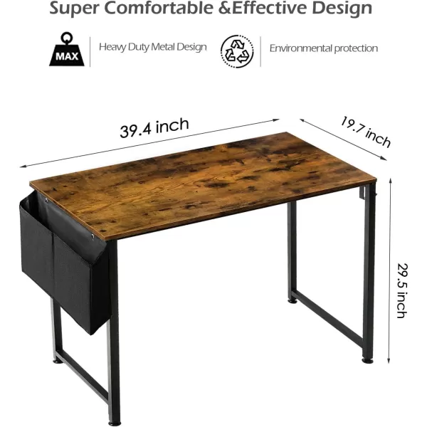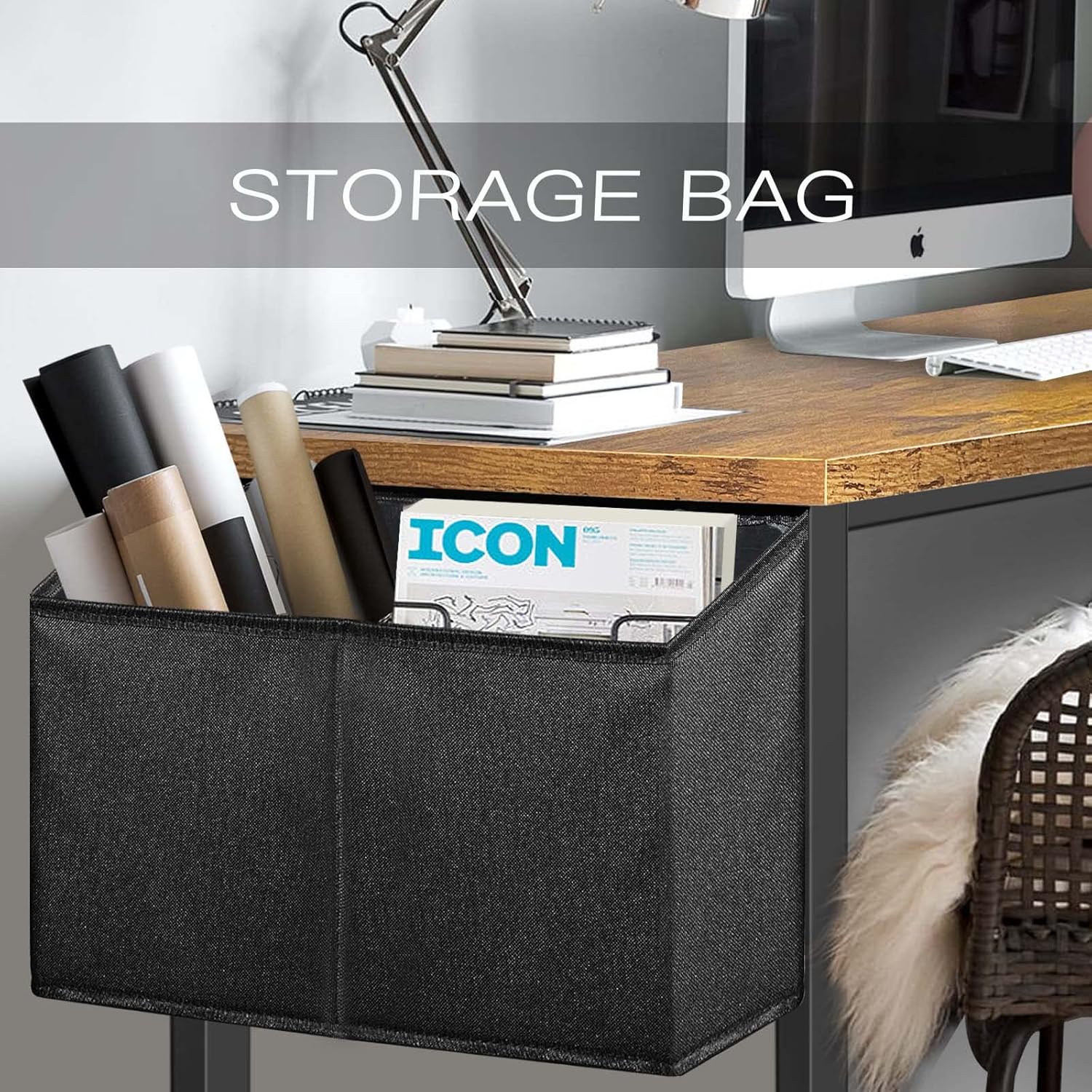 Modern Simple Style Design: Desk is made of thick Particle board with scratch-resistant, anti-collision and waterproof, protect home office desk surface from daily wear and tear, Brown desktop match black metal frame ,with storage bag and Headphone hook ( Both Removable ) .