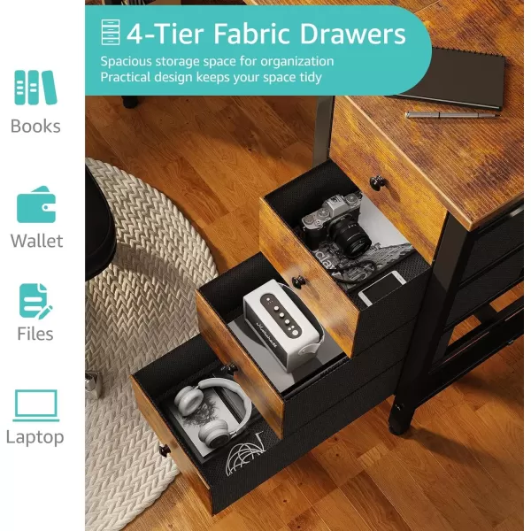 Modern Simple Style Design: Computer desk with 2 storage shelves and 4 𝙁𝙖𝙗𝙧𝙞𝙘 𝘿𝙧𝙖𝙬𝙚𝙧𝙨 with wooden front, you can try this two installation methods (left or right), and the shelves have two different heights of installation, you can customize the storage space to your needs. This desk is made of thick P2 particle wood board with scratch-resistant, anti-collision and waterproof, protect home office desk surface from daily wear and tear.