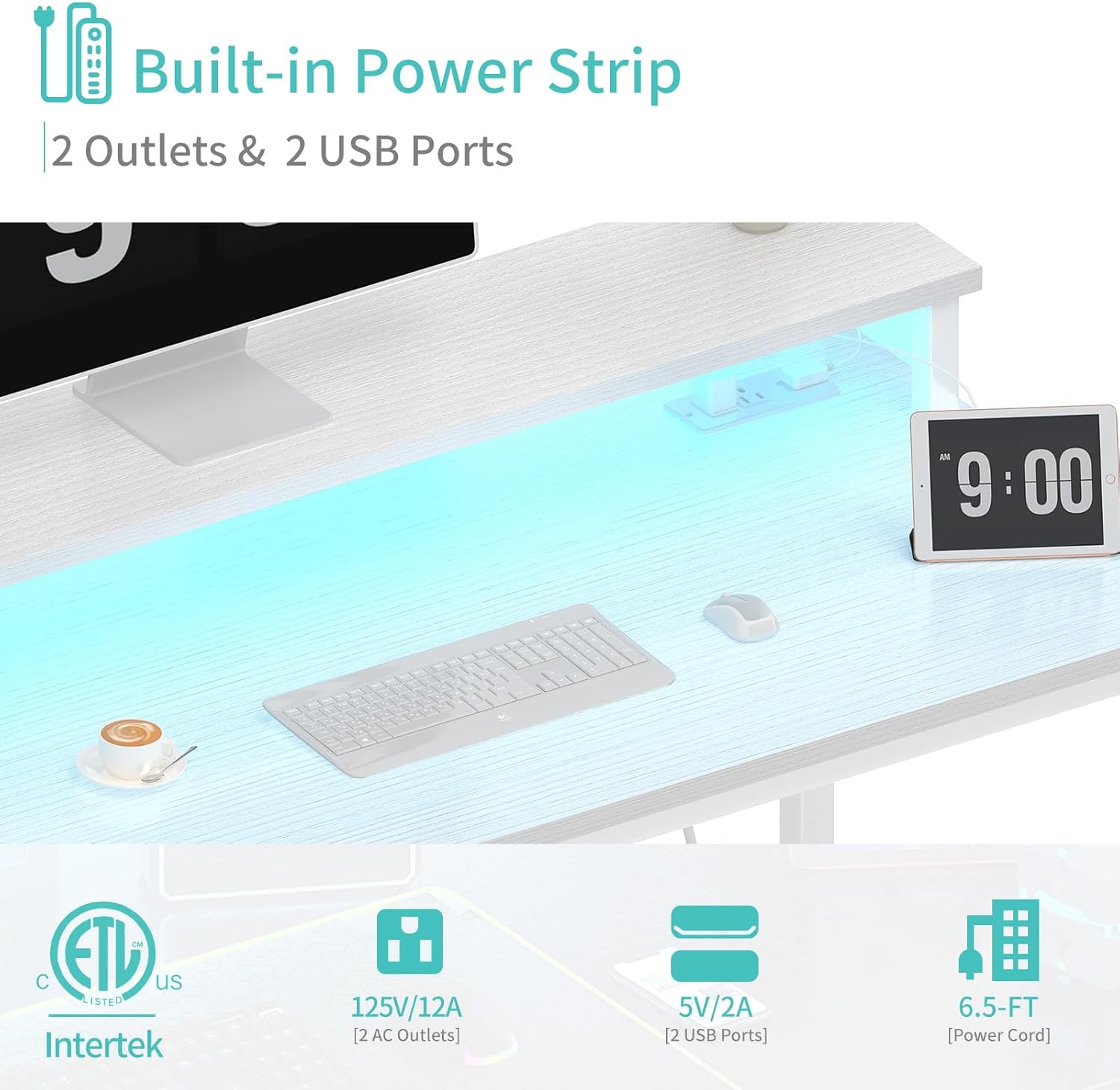 Safety Multi-functional Power Strip: The computer desk includes a built-in power strip with 2 power outlets & 2 USB charging ports for your computer, monitor, gaming gear, pad, phone and other electronic devices.